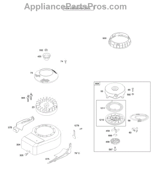 Parts for Briggs & Stratton 10F902-0112-B1: Blower Housing / Shrouds, Flywheel, Rewind Starter Parts