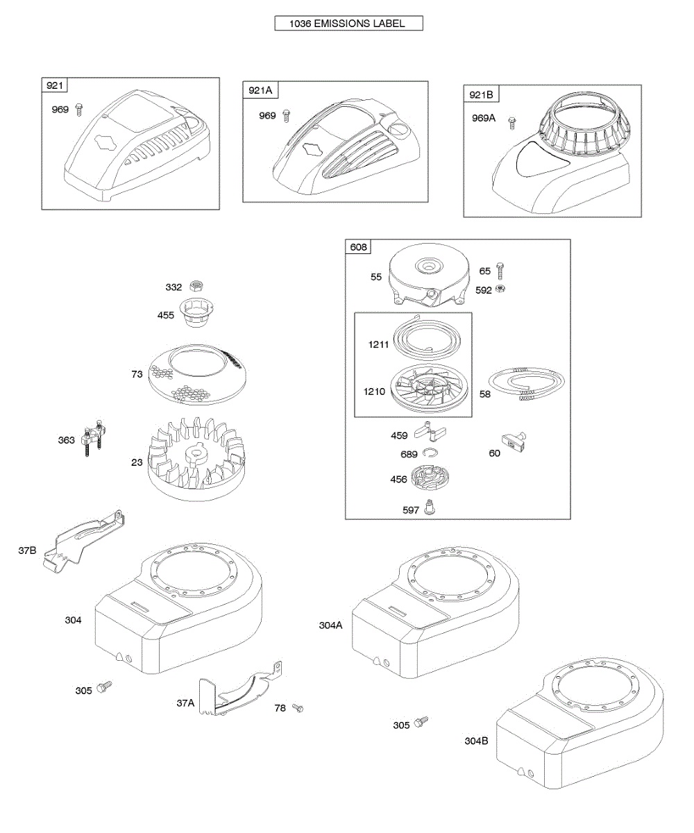 Parts for Briggs & Stratton 10H902-0246-E1: Blower Housing / Shrouds, Flywheel, Rewind Starter Parts