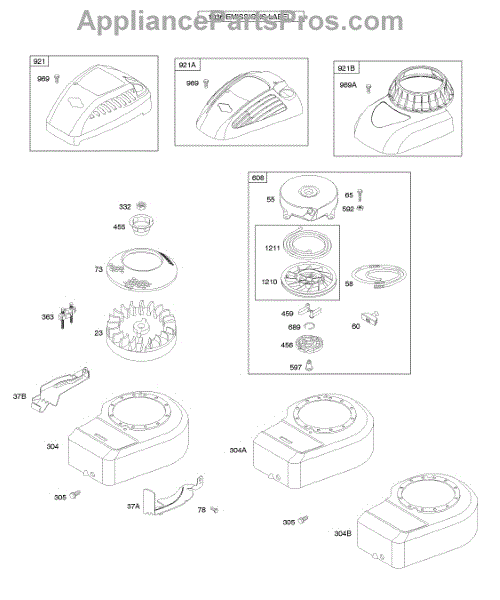 Parts for Briggs & Stratton 10H902-0455-E1: Blower Housing / Shrouds, Flywheel, Rewind Starter Parts