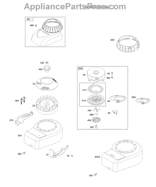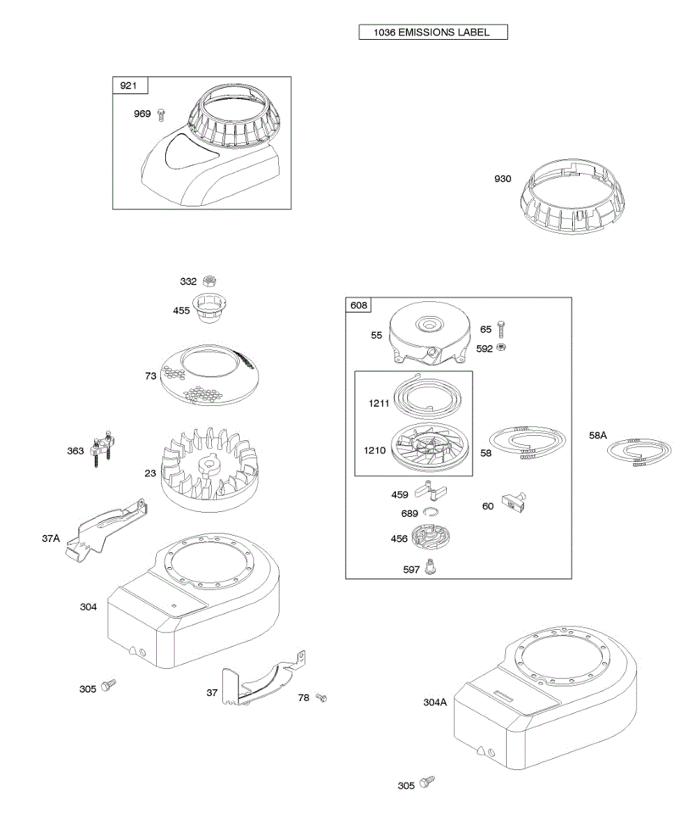 Parts for Briggs & Stratton 10J902-0315-E1: Blower Housing / Shrouds, Flywheel, Rewind Starter Parts