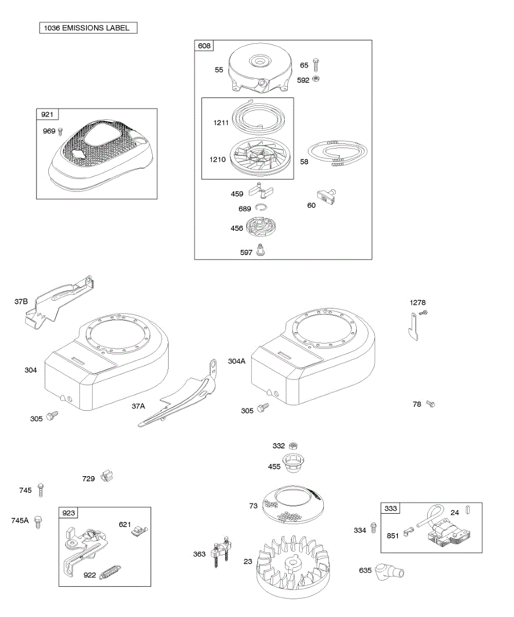 Parts for Briggs & Stratton 10N902-0015-E1: Blower Housing / Shrouds, Brake, Flywheel, Rewind Starter Parts