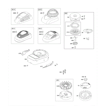 Parts for Briggs & Stratton 10T602-0112-E1: Blower Housing / Shrouds, Flywheel, Rewind Starter Parts
