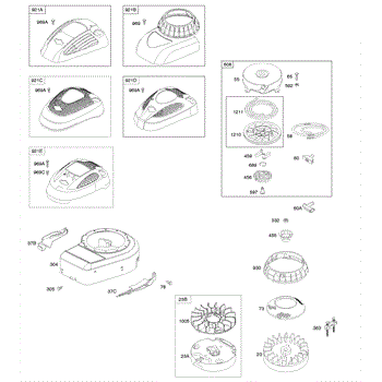 Parts for Briggs & Stratton 10T802-0197-B1: Blower Housing / Shrouds, Flywheel, Rewind Starter Parts