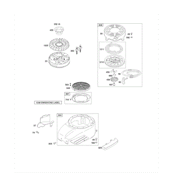 Parts for Briggs & Stratton 11C602-0100-E1: Blower Housing / Shrouds, Flywheel, Rewind Starter Parts