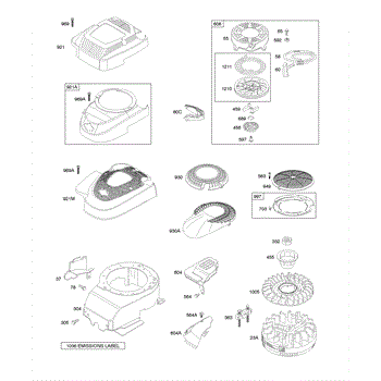 Parts for Briggs & Stratton 120K02-0418-E1: Blower Housing / Shrouds, Flywheel, Rewind Starter Parts