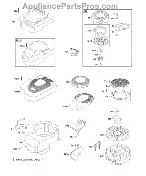 Parts for Briggs & Stratton 120K02-0655-E1: Blower Housing / Shrouds, Flywheel, Rewind Starter Parts