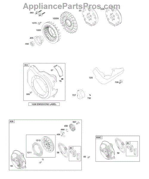 Parts for Briggs & Stratton 121312-0144-B3: Blower Housing / Shrouds, Flywheel, Rewind Starter Parts