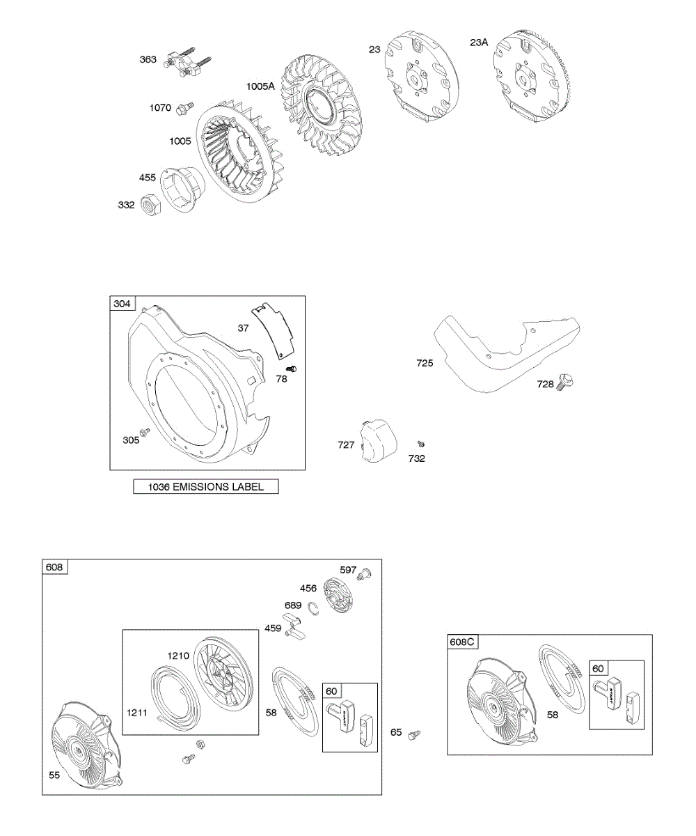 Parts for Briggs & Stratton 121332-0164-B8: Blower Housing / Shrouds, Flywheel, Rewind Starter Parts