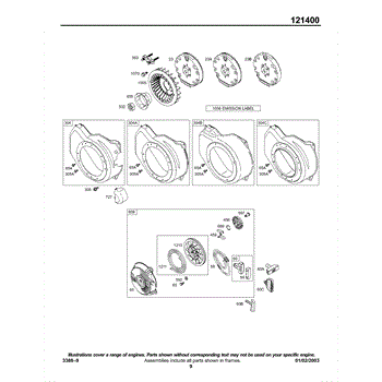Parts for Briggs & Stratton 121432-0036-E2: Blower Housing / Shrouds, Flywheel, Rewind Group Parts