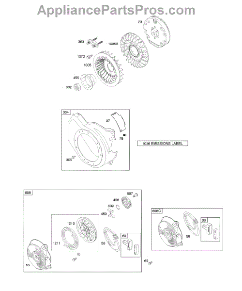 Parts for Briggs & Stratton 121A32-0101-E1: Blower Housing / Shrouds, Flywheel, Rewind Starter Parts