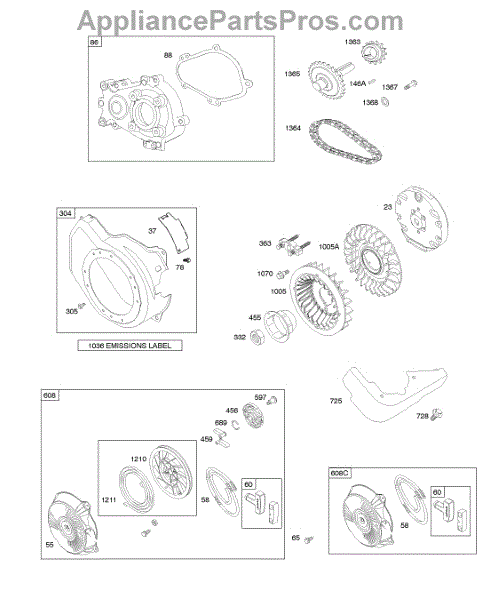 Parts for Briggs & Stratton 124332-0153-01: Blower Housing / Shrouds, Flywheel, Gear Reduction, Rewind Starter Parts