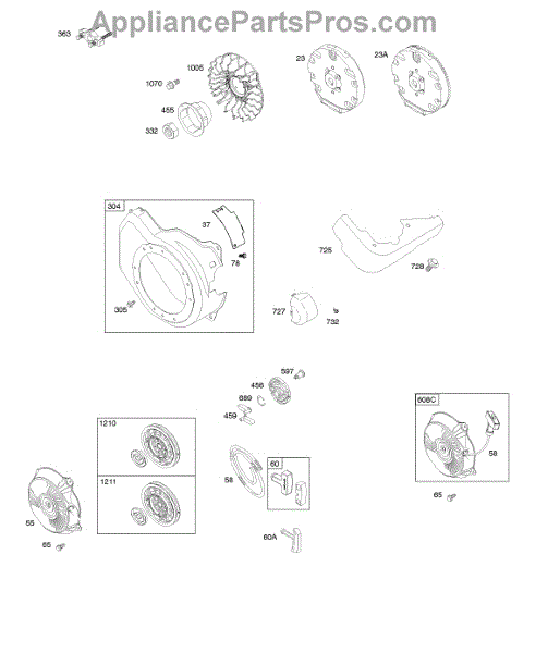 Parts for Briggs & Stratton 126332-0176-B1: Blower Housing / Shrouds, Flywheel, Rewind Starter Parts