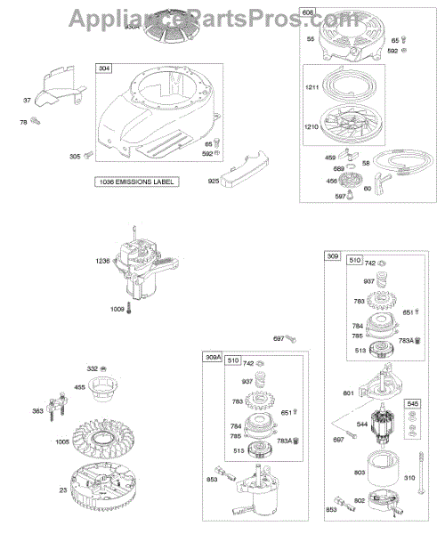 A rewind starter, also called a recoil starter, is an assembly on many types of lawn and garden equipment used to trigger combustion in the engine. Set at the front or top of the engine, it cues the starting mechanism to turn the engine fast enough for a spark to ignite fuel in the cylinder when the handle is pulled. This part features a recoil spring connected to a pulley, and when the rope is yanked, it stretches a recoil spring. Letting go of the rope causes the spring to snap back, and the user will be able to continually pull the rope and get things moving faster and faster until there is combustion. The rope is part of the pulley system that will pull out and recoil quickly into the starter cover on top of the engine when the user pulls the starter rope’s handle. If there is no recoil or the rope gets stuck, it may need to be replaced. Without a functional starter assembly, the machine won’t work. A rewind starter kit can be used to address this issue. An authentic OEM part, it works with Briggs & Stratton and Husqvarna equipment. It contains a plastic shroud, starter pulley, starter spring, grip, the pull rope, and all hardware necessary to attach it to the machine.