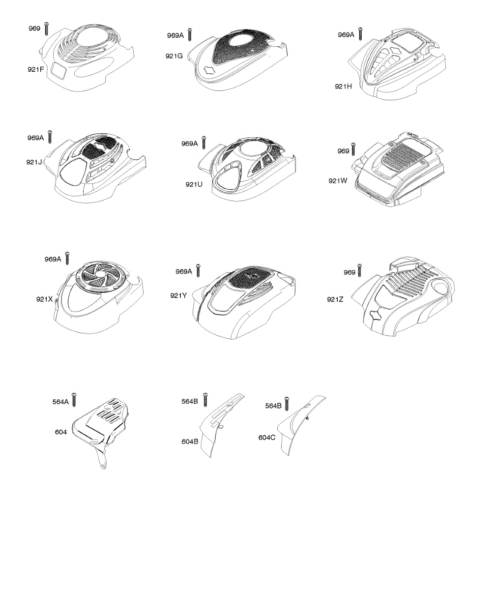 Blower housing cover installs over the engine cooling fan to protect internal components. Replace if cracked, broken, or missing to restore proper airflow.