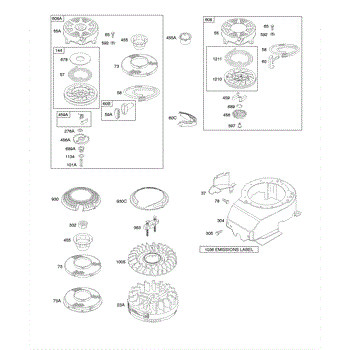 Parts for Briggs & Stratton 129702-0109-01: Blower Housing / Shrouds, Flywheel, Rewind Starter Parts