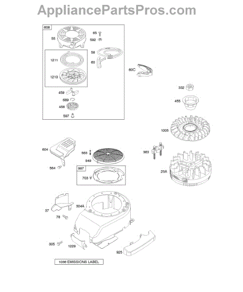 A rewind starter, also called a recoil starter, is an assembly on many types of lawn and garden equipment used to trigger combustion in the engine. Set at the front or top of the engine, it cues the starting mechanism to turn the engine fast enough for a spark to ignite fuel in the cylinder when the handle is pulled. This part features a recoil spring connected to a pulley, and when the rope is yanked, it stretches a recoil spring. Letting go of the rope causes the spring to snap back, and the user will be able to continually pull the rope and get things moving faster and faster until there is combustion. The rope is part of the pulley system that will pull out and recoil quickly into the starter cover on top of the engine when the user pulls the starter rope’s handle. If there is no recoil or the rope gets stuck, it may need to be replaced. Without a functional starter assembly, the machine won’t work. A rewind starter kit can be used to address this issue. An authentic OEM part, it works with Briggs & Stratton and Husqvarna equipment. It contains a plastic shroud, starter pulley, starter spring, grip, the pull rope, and all hardware necessary to attach it to the machine.