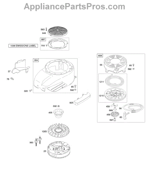 Parts for Briggs & Stratton 12A602-0100-B1: Blower Housing / Shrouds, Flywheel, Rewind Starter Parts