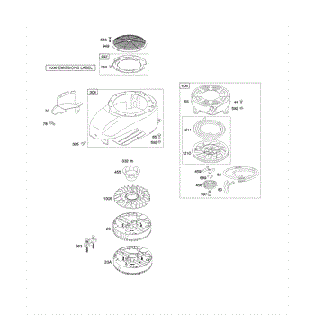 Parts for Briggs & Stratton 12B602-0104-E1: Blower Housing / Shrouds, Flywheel, Rewind Starter Parts
