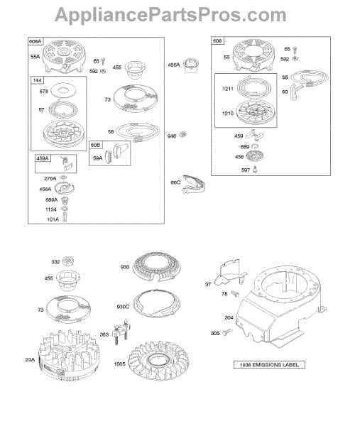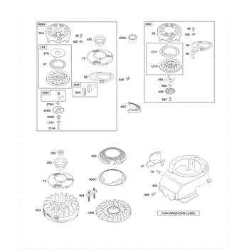 Parts for Briggs & Stratton 12F702-1868-D1: Blower Housing / Shrouds, Flywheel, Rewind Starter Parts