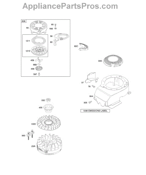 Parts for Briggs & Stratton 12H702-1767-E1: Blower Housing / Shrouds, Flywheel, Rewind Starter Parts