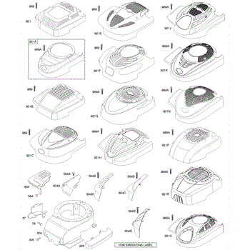 Blower housing cover installs over the engine cooling fan to protect internal components. Replace if cracked, broken, or missing to restore proper airflow.