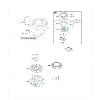 Parts for Briggs & Stratton 12J702-1749-E1: Blower Housing / Shrouds, Flywheel, Rewind Starter Parts