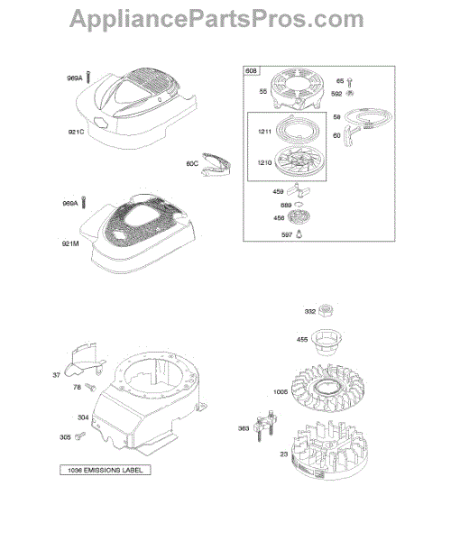 Parts for Briggs & Stratton 12L902-0663-E1: Blower Housing / Shrouds, Flywheel, Rewind Starter Parts