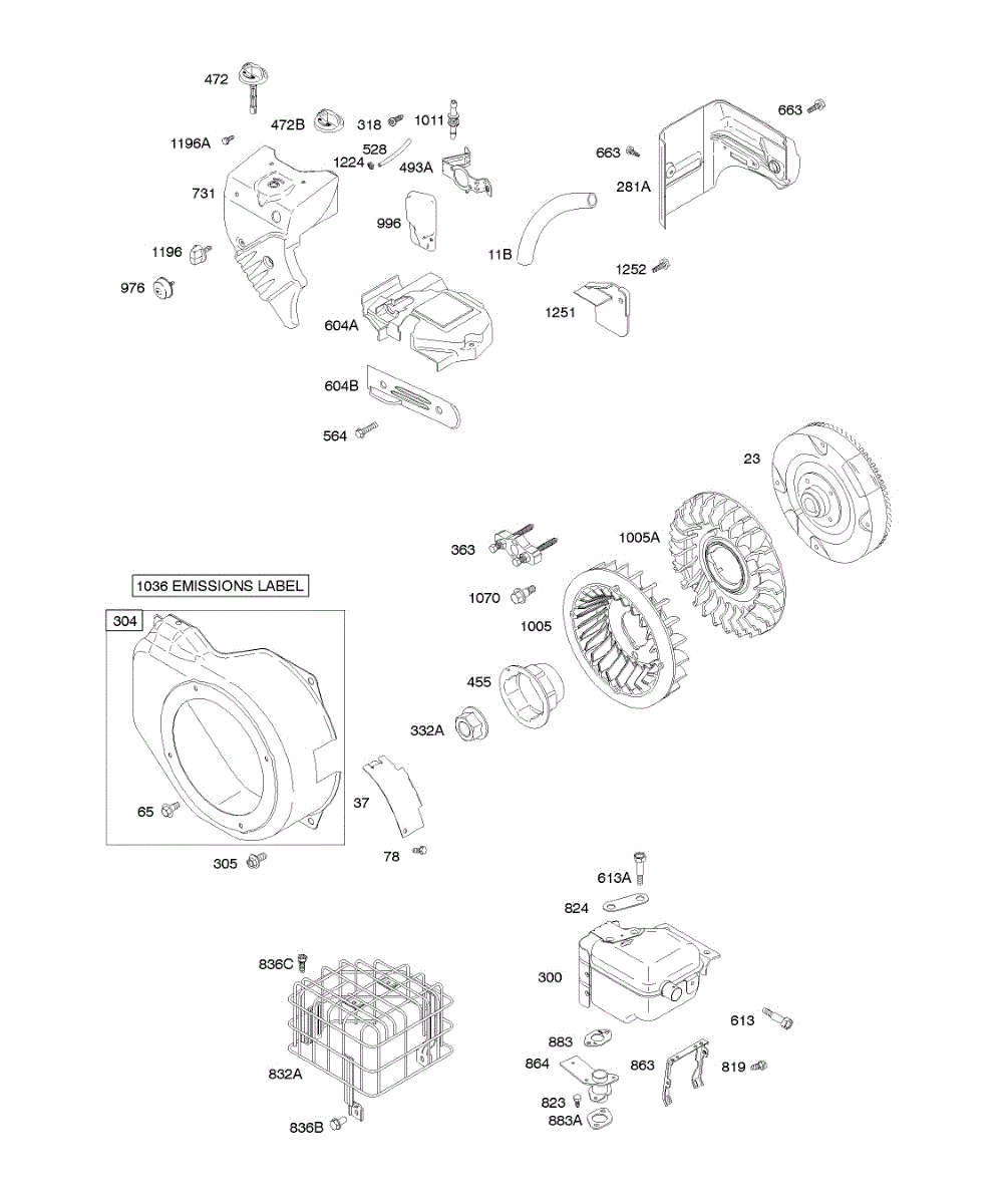 Parts for Briggs & Stratton 12R212-0346-E1: Blower Housing / Shrouds, Exhaust System, Flywheel Parts