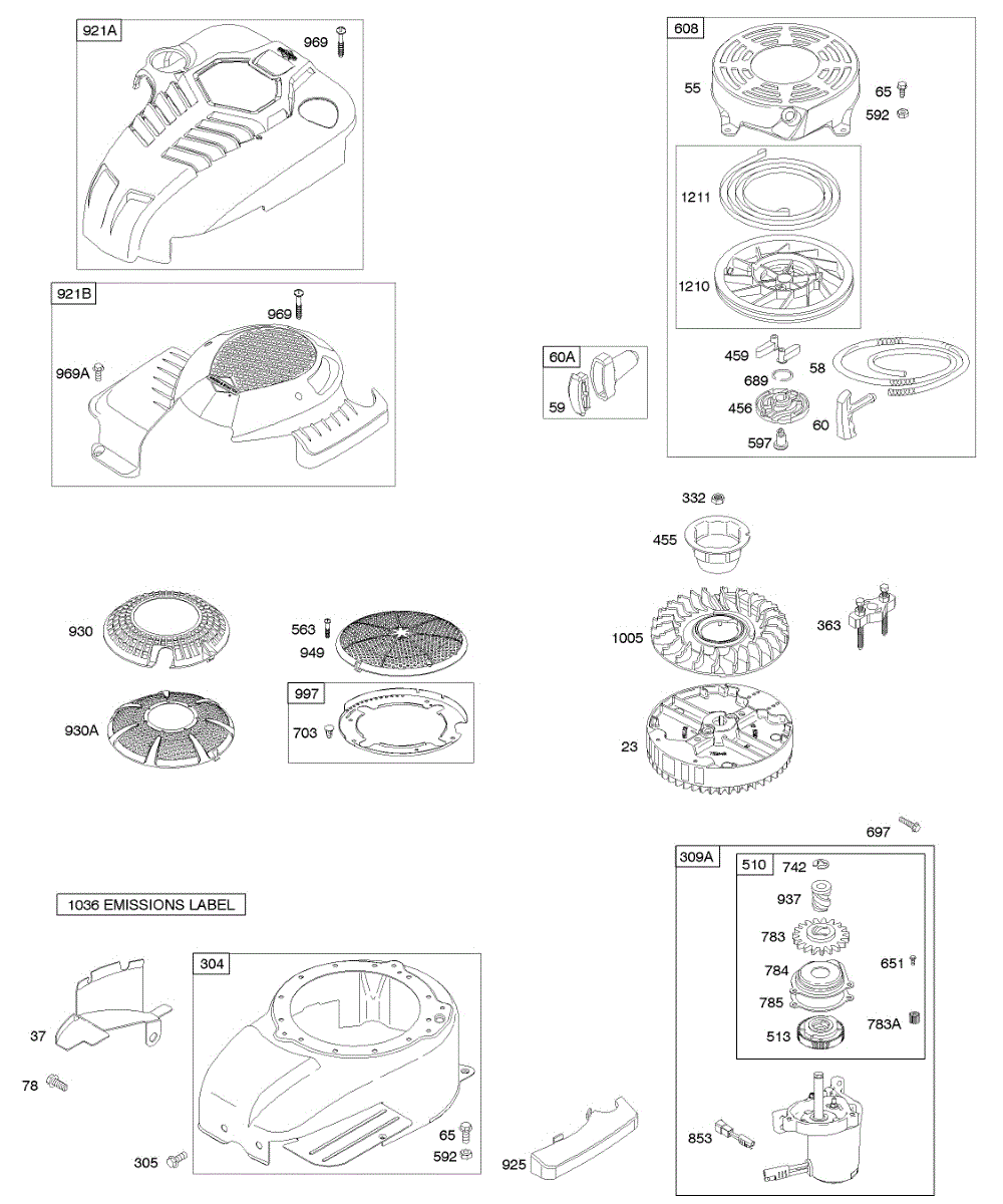 A rewind starter, also called a recoil starter, is an assembly on many types of lawn and garden equipment used to trigger combustion in the engine. Set at the front or top of the engine, it cues the starting mechanism to turn the engine fast enough for a spark to ignite fuel in the cylinder when the handle is pulled. This part features a recoil spring connected to a pulley, and when the rope is yanked, it stretches a recoil spring. Letting go of the rope causes the spring to snap back, and the user will be able to continually pull the rope and get things moving faster and faster until there is combustion. The rope is part of the pulley system that will pull out and recoil quickly into the starter cover on top of the engine when the user pulls the starter rope’s handle. If there is no recoil or the rope gets stuck, it may need to be replaced. Without a functional starter assembly, the machine won’t work. A rewind starter kit can be used to address this issue. An authentic OEM part, it works with Briggs & Stratton and Husqvarna equipment. It contains a plastic shroud, starter pulley, starter spring, grip, the pull rope, and all hardware necessary to attach it to the machine.