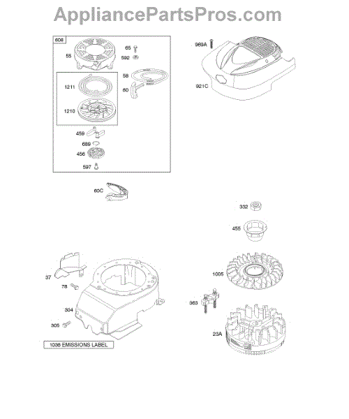 A rewind starter, also called a recoil starter, is an assembly on many types of lawn and garden equipment used to trigger combustion in the engine. Set at the front or top of the engine, it cues the starting mechanism to turn the engine fast enough for a spark to ignite fuel in the cylinder when the handle is pulled. This part features a recoil spring connected to a pulley, and when the rope is yanked, it stretches a recoil spring. Letting go of the rope causes the spring to snap back, and the user will be able to continually pull the rope and get things moving faster and faster until there is combustion. The rope is part of the pulley system that will pull out and recoil quickly into the starter cover on top of the engine when the user pulls the starter rope’s handle. If there is no recoil or the rope gets stuck, it may need to be replaced. Without a functional starter assembly, the machine won’t work. A rewind starter kit can be used to address this issue. An authentic OEM part, it works with Briggs & Stratton and Husqvarna equipment. It contains a plastic shroud, starter pulley, starter spring, grip, the pull rope, and all hardware necessary to attach it to the machine.