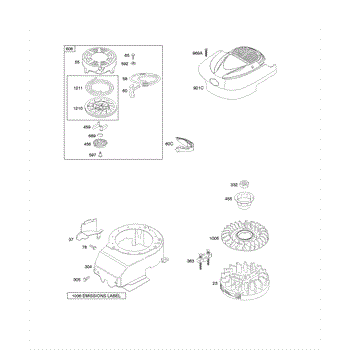 A rewind starter, also called a recoil starter, is an assembly on many types of lawn and garden equipment used to trigger combustion in the engine. Set at the front or top of the engine, it cues the starting mechanism to turn the engine fast enough for a spark to ignite fuel in the cylinder when the handle is pulled. This part features a recoil spring connected to a pulley, and when the rope is yanked, it stretches a recoil spring. Letting go of the rope causes the spring to snap back, and the user will be able to continually pull the rope and get things moving faster and faster until there is combustion. The rope is part of the pulley system that will pull out and recoil quickly into the starter cover on top of the engine when the user pulls the starter rope’s handle. If there is no recoil or the rope gets stuck, it may need to be replaced. Without a functional starter assembly, the machine won’t work. A rewind starter kit can be used to address this issue. An authentic OEM part, it works with Briggs & Stratton and Husqvarna equipment. It contains a plastic shroud, starter pulley, starter spring, grip, the pull rope, and all hardware necessary to attach it to the machine.
