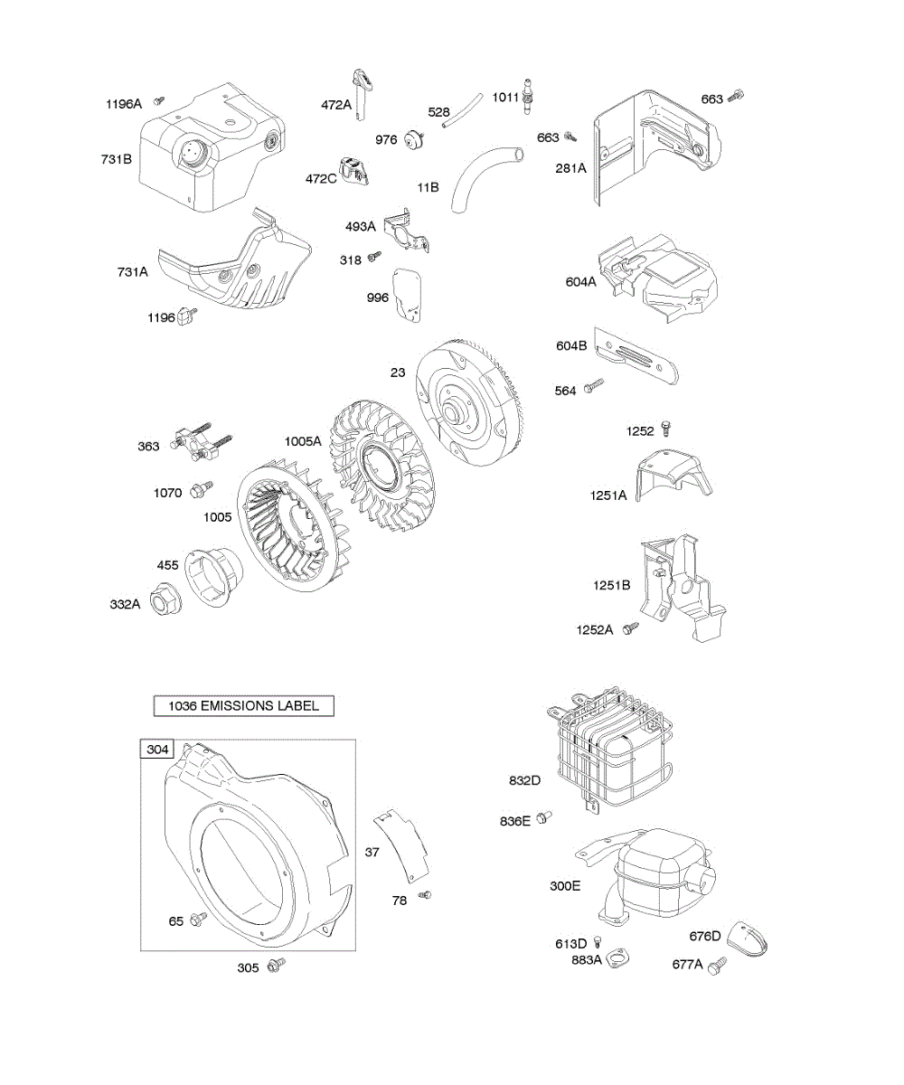 Parts for Briggs & Stratton 15A104-0545-E8: Blower Housing / Shrouds, Exhaust System, Flywheel Parts