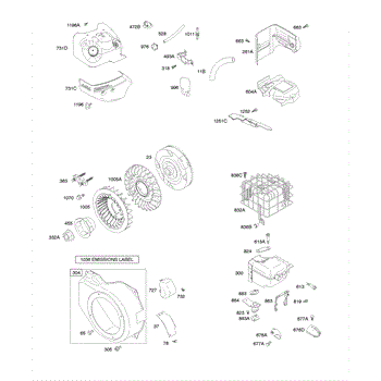 Parts for Briggs & Stratton 15D102-0111-E1: Blower Housing / Shrouds, Exhaust System, Flywheel Parts