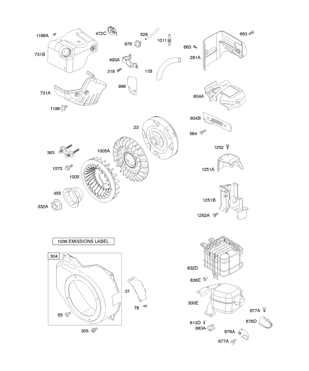 Parts for Briggs & Stratton 15Z314-0112-E1: Blower Housing / Shrouds, Exhaust System, Flywheel Parts