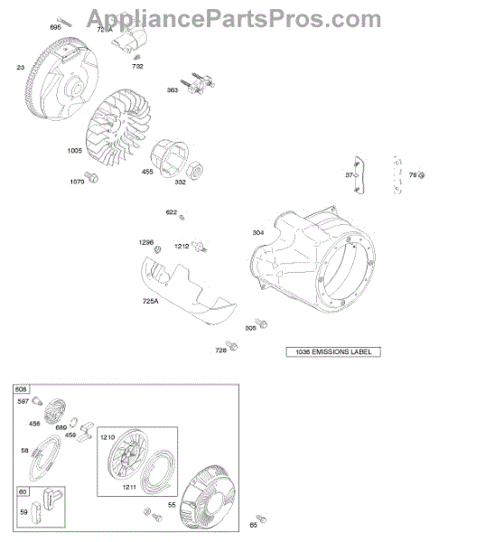 Parts for Briggs & Stratton 205332-1036-E9: Blower Housing / Shrouds, Flywheel, Rewind Starter Parts