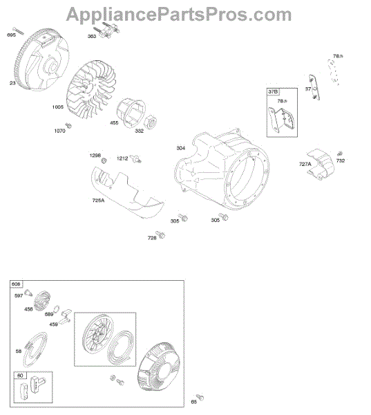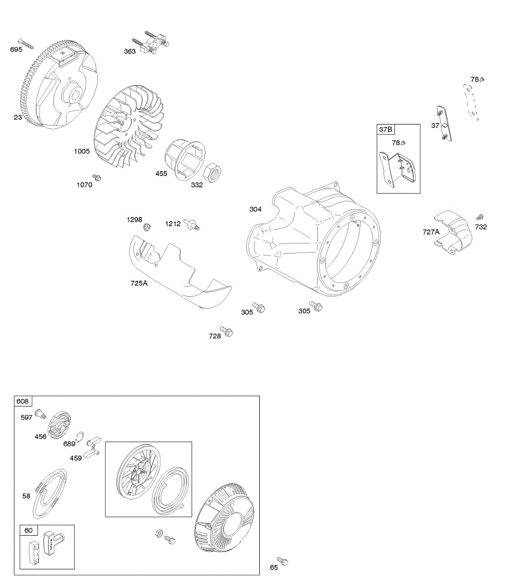 Parts for Briggs & Stratton 20L237-0110-G1: Blower Housing / Shrouds, Flywheel, Rewind Starter Parts