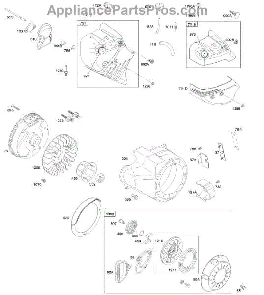 Parts for Briggs & Stratton 20M414-0119-E1: Blower Housing / Shrouds, Flywheel, Rewind Starter Parts