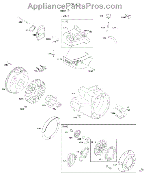 Parts for Briggs & Stratton 20P437-0110-E1: Blower Housing / Shrouds, Flywheel, Rewind Starter Parts
