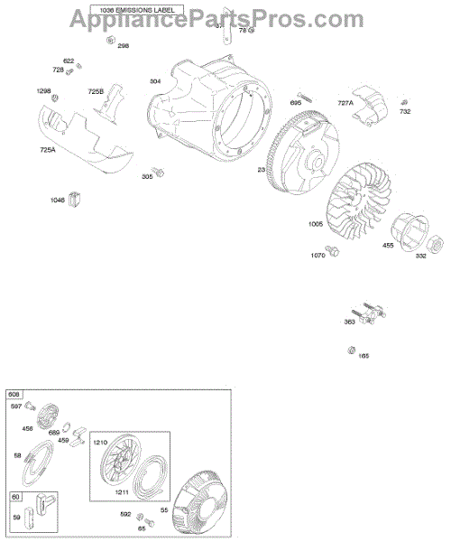 Parts for Briggs & Stratton 210417-0193-E9: Blower Housing / Shrouds, Flywheel, Rewind Starter Parts