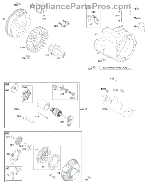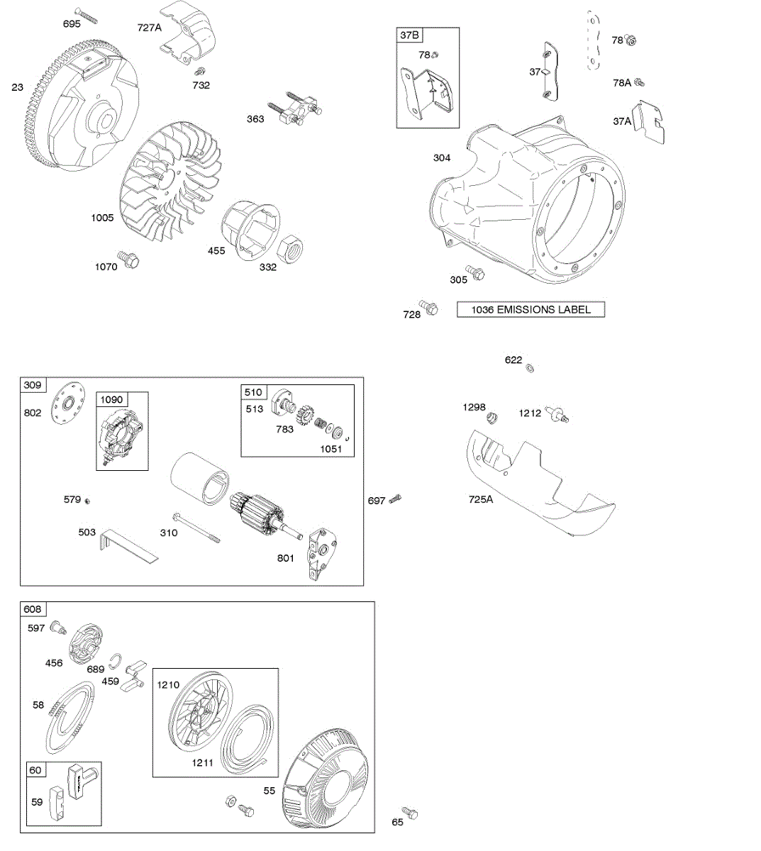 Parts for Briggs & Stratton 212312-0125-B1: Blower Housing / Shrouds, Electric Starter, Flywheel, Rewind Starter Parts