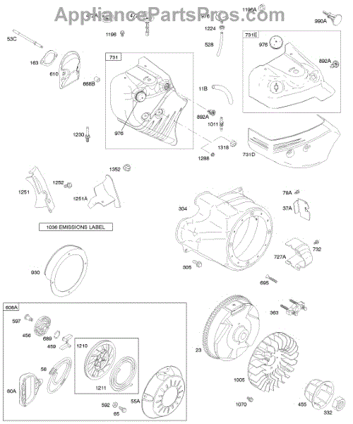 Parts for Briggs & Stratton 21A414-0119-E1: Blower Housing / Shrouds, Flywheel, Rewind Starter Parts