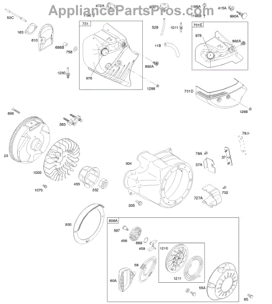 Parts for Briggs & Stratton 21M414-0134-E1: Blower Housing / Shrouds, Flywheel, Rewind Starter Parts
