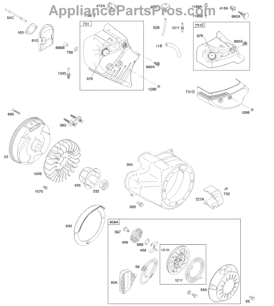 Parts for Briggs & Stratton 21P214-0121-E1: Blower Housing / Shrouds, Flywheel, Rewind Starter Parts