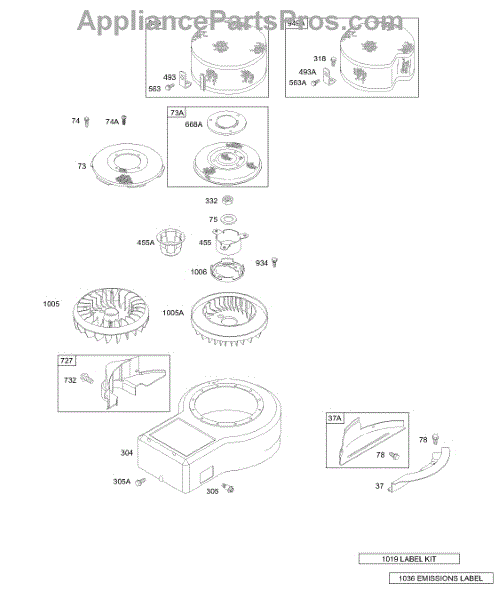 Parts for Briggs & Stratton 28B707-0136-01: Blower Housing, Shrouds, Label Kits Parts