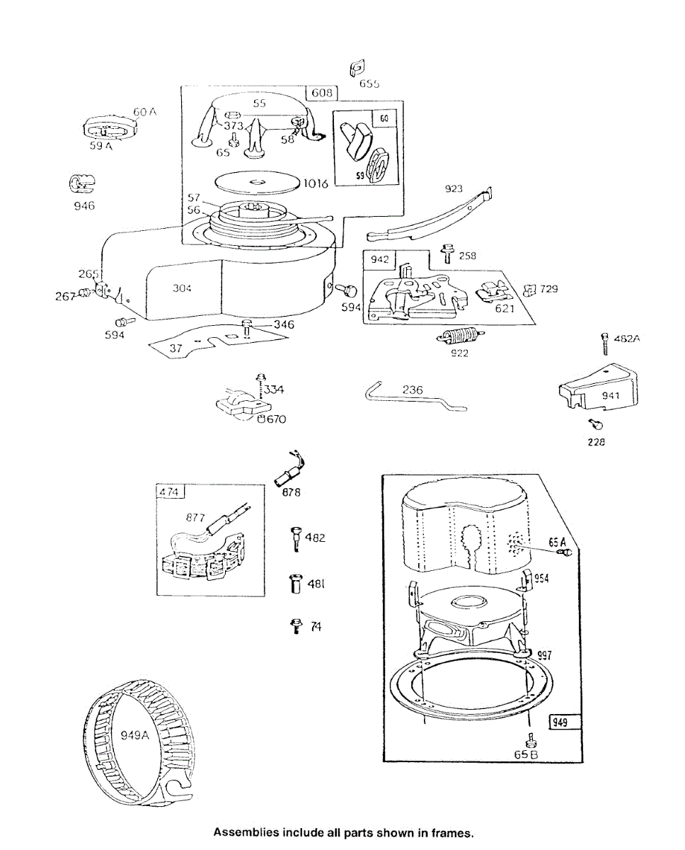 Parts for Briggs & Stratton 132922-0193-01: Blower Hsg,Brake,Rewind,Grds Parts
