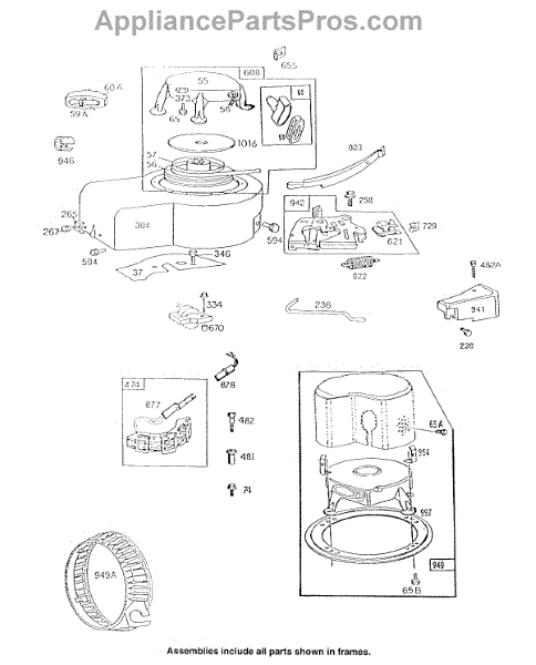 Parts for Briggs & Stratton 132982-0186-01: Blower Hsg,Brake,Rewind,Grds Parts
