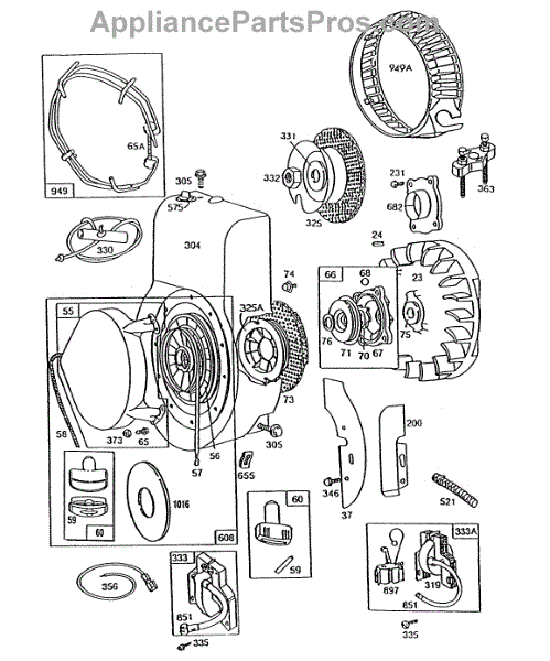 Parts for Briggs & Stratton 130232-1811-02: Blower Hsg,Flywheel,Rewind Parts