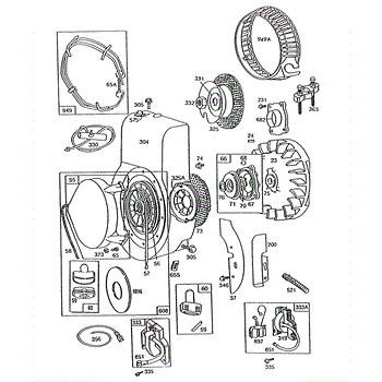 Parts for Briggs & Stratton 130292-1866-01: Blower Hsg,Flywheel,Rewind Parts