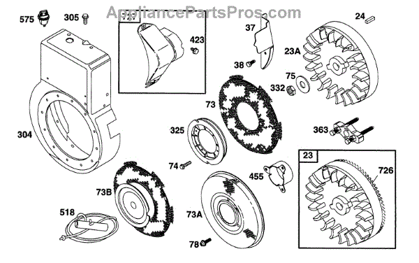Parts for Briggs & Stratton 221452-5049-03: Blower Hsg, Flywheel,Screens Parts
