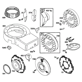 Parts for Briggs & Stratton 252702-0218-99: Blower Hsg, Flywheel, Screen Parts